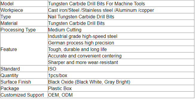 - When using this tungsten carbide drill bits for the first time, try to cut at 90% of the cutting speed or 85% of the feed speed according to the above data, and then increase the cutting speed and feed rate one by one after the cutting condition is stable