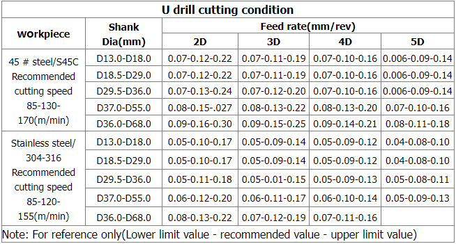 U-drill cutting condition table