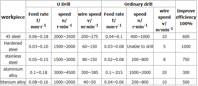 Comparison of cutting parameters between U-drill and ordinary drill bits