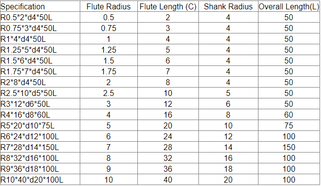 If the following carbide end mill cannot meet your requirements, we support OEM customized production. The diameter of 0.2mm to 25mm, the total length of 50mm to 200mm, 4F, 5F, 6F, 8F and logo can be customized, including inch size end milling cutter.