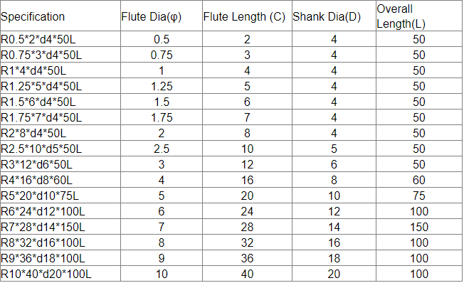 The new fine grain tungsten steel matrix material has high wear resistance and strength, and is especially suitable for general carbide ball nose end mill for high hardness and high-speed cutting applications; The WALTER machine imported from Germany is used for processing, with a handle diameter tolerance of 0/± 0.005. The international standard straight handle can effectively suppress chatter during processing, which is the basis of excellent quality; Full grinding edge, the tool surface presents a mirror effect, improving the surface finish; Refine spiral groove, optimize spiral groove design, smooth chip removal without sticking the cutter; The bottom chamfer design is easier to operate during clamping, and the clamping is more smooth.