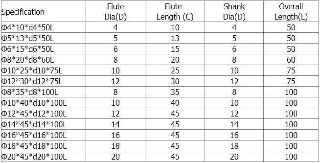 If the following carbide roughing end mill cannot meet your requirements, we support OEM customized production. The diameter of 0.2mm to 25mm, the total length of 50mm to 200mm, 4F, 5F, 6F, 8F and logo can be customized, including inch size end milling cutter. Please contact us to select or customize non-standard carbide roughing end mill according to your needs.