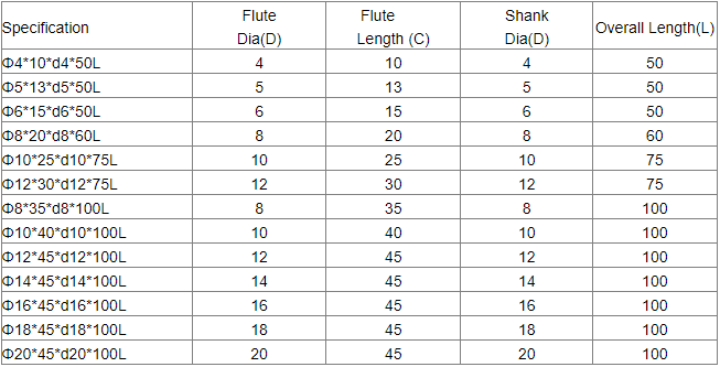 If the following carbide flat end mill cannot meet your requirements, we support OEM customized production. The diameter of 0.2mm to 25mm, the total length of 50mm to 200mm, 4F, 5F, 6F, 8F and logo can be customized, including inch size flat end milling cutter.