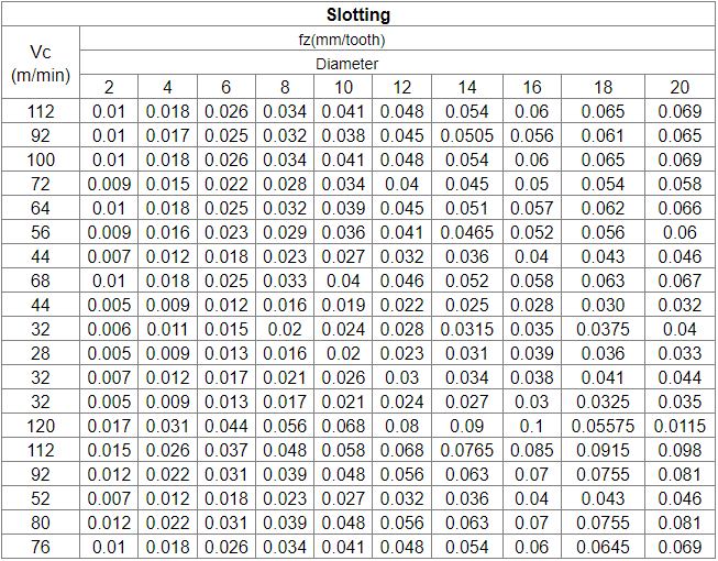 Milling Parameters: