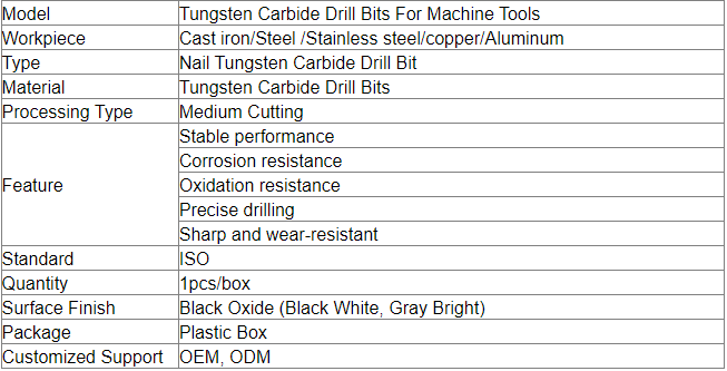 - When using this tungsten carbide drill bits for the first time, try to cut at 90% of the cutting speed or 85% of the feed speed according to the above data, and then increase the cutting speed and feed rate one by one after the cutting condition is stable