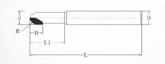 | specification | D Dia of shank | d Flute diameter | L full length | L1 Cutting Dia | Blade length | Z Teeth | R radius |