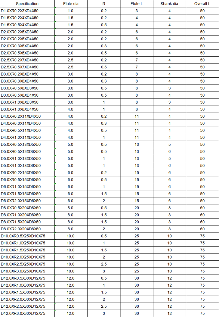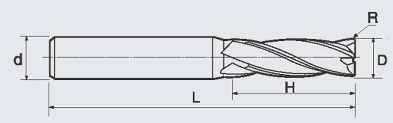 Rounded-Edge Square(corner radius end mill:For rough milling to remove a large number of blank, but also finishing milling flat surface (relative to steep surface) small chamfer