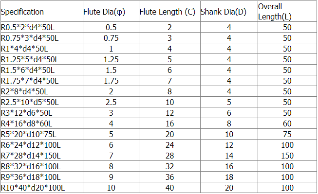 If the following carbide end mill cannot meet your requirements, we support OEM customized production. The diameter of 0.2mm to 25mm, the total length of 50mm to 200mm, 4F, 5F, 6F, 8F and logo can be customized, including inch size end milling cutter.