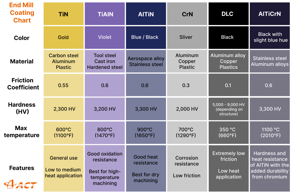 Using the wrong coating can lead to chip buildup, excessive heat, or premature wear.